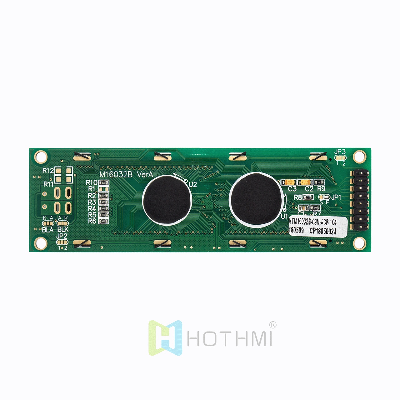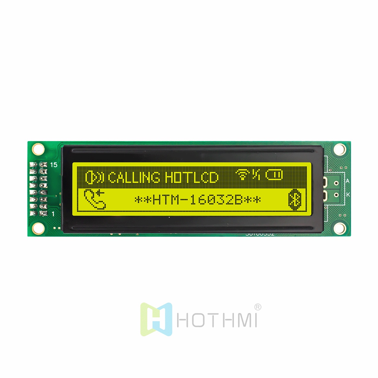 The 3.4" 160x32LCD Graphic Dot Matrix Module displays deep black pixels on a bright yellow-green background. This transflective LCD display is engineered to provide optimal visibility in a variety of lighting conditions in many different environments. In bright sunlight, the display uses its reflective layer to reflect ambient light back to the viewer, making the screen easy to read. In darker environments, the LCD has a strong built-in backlight that provides high contrast and displays clear graphics to the viewer. This advanced display technology ensures that the display is always easy to read regardless of the lighting conditions.