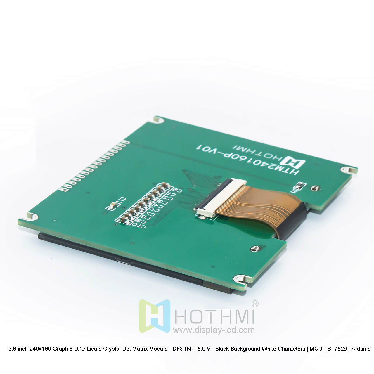 This HOT Display 240x160 Graphic LCD Display Module displays illuminated white pixels on a black background. This translucent LCD display is carefully designed to provide optimal visibility in a variety of lighting conditions in many different environments. In bright sunlight, the display uses its reflectivity to reflect the pattern to the viewer, making the screen easy to read. In darker environments, the LCD has a strong backlight built in to provide high contrast and display clear graphics to the viewer. This advanced display technology ensures that the display is always easy to read regardless of the lighting conditions.