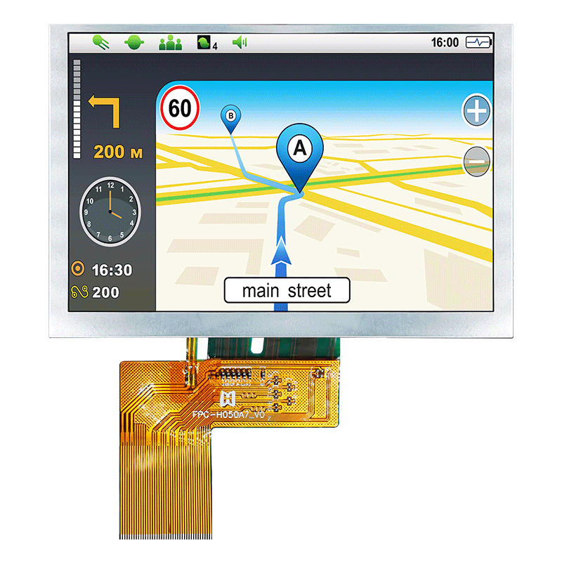 TFT-H050A7SVISTKN40 | 5.0" IPS LCD Display | TFT LCD Display Manufacturer | 800x480 resolution | -30℃~85℃ | Sunlight Readable Monitors | wide temperature