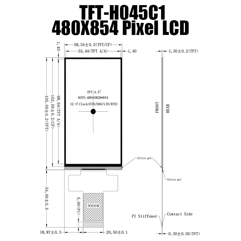 TFT-H045C1FWTNT0N40 | 4.5" Fully Transparent LCD DISPLAY | TFT LCD Display Manufacturer | 480x854 resolution | -20℃~70℃ | FOR 3D PRINTERS | IC NT35510S | Interface MCU8080 | sunlight readable