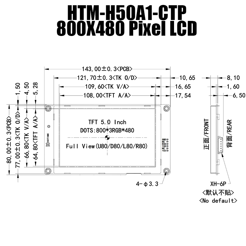 5-inch diagonal color TFT screen, standard non-touch/resistive touch/capacitive touch