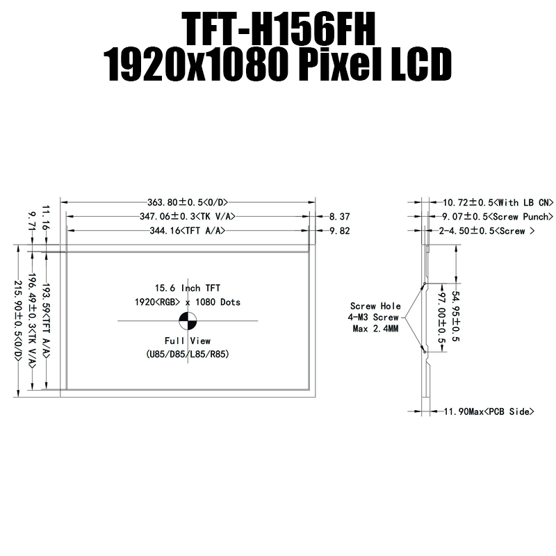 • Model : 15.6 Inch IPS 1920x1080 Capacitive Touch Wide Temperature TFT Display Panel LVDS TFT-H156FHDIK03-CTP