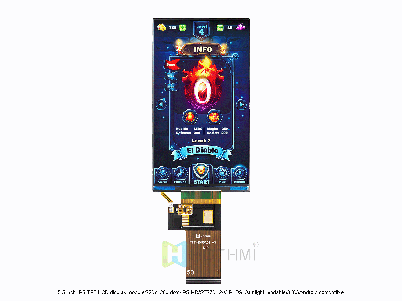 | 5.5 inch IPS TFT LCD display module/720x1280 dots/IPS HD/ST7701S/MIPI DSI interface/sunlight readable/3.3V/Android compatible | TFT LCD | 720x1280 |
