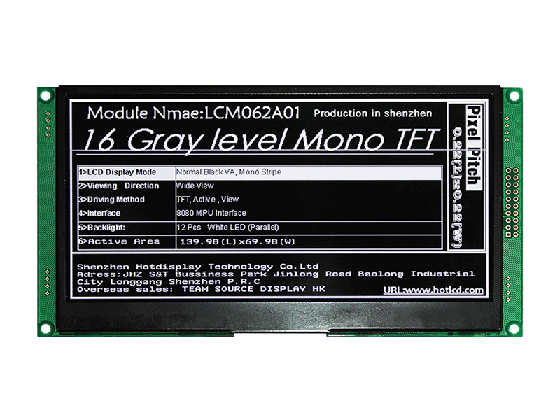 | 6.2寸MonoTFT/640*320Image resolution/High contrast/HTM062A02 | TFT mono | 640x320 |