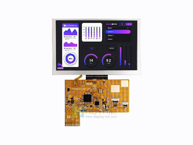 | 4.3-inch UART smart serial screen/480x272 resolution/IPS full-view TFT with board module HTM-H043A10-A5-UART | TFT Module | 480X272 |