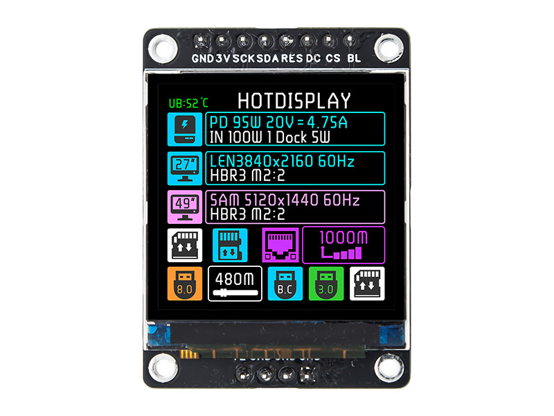 1.5 inch 240x240 Square TFT Modules with ST7789 driver board HTM-H015A2-SPI-V02 TFT Module 240x240 32x43.72x1.95 1.5 1.5 27.72x27.72 IPS 700cd/m2 SPI Anti-static ESD 8KV -20~70℃ +3.3V ST7789