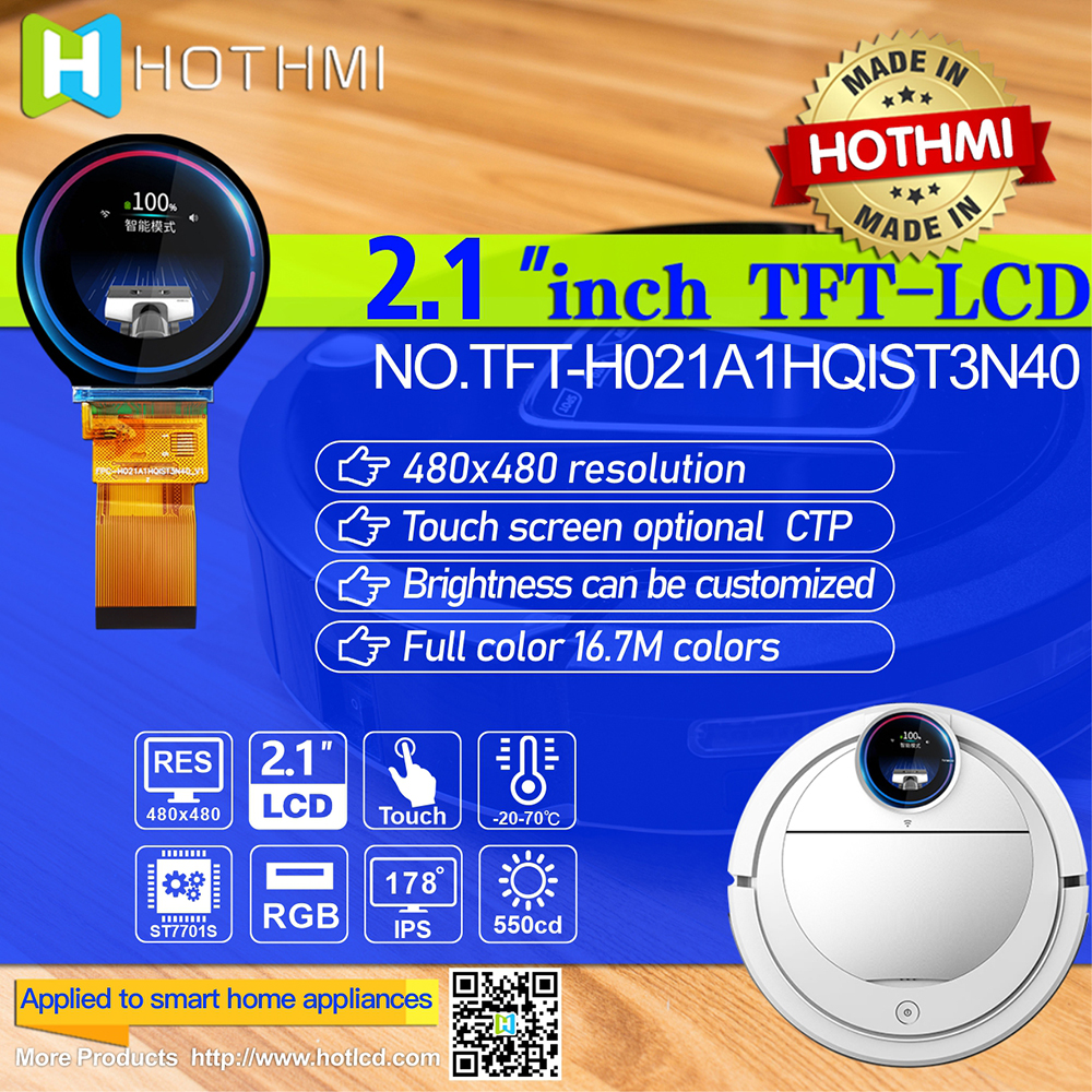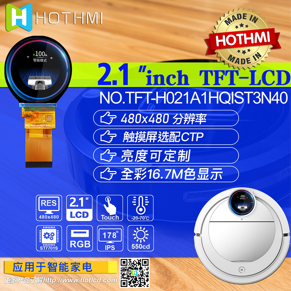 TFT-H021A1HQIST5N40 是一款2.1寸 TFT LCD 顯示屏,顯示屏直徑為 2.1英寸,分辨率為 480x480 像素。 這款圓形 TFT 顯示屏由 IPS TFT-LCD 面板組成,內(nèi)置 ST7701S 驅(qū)動(dòng)器 IC,可通過RGB接口進(jìn)行通信。