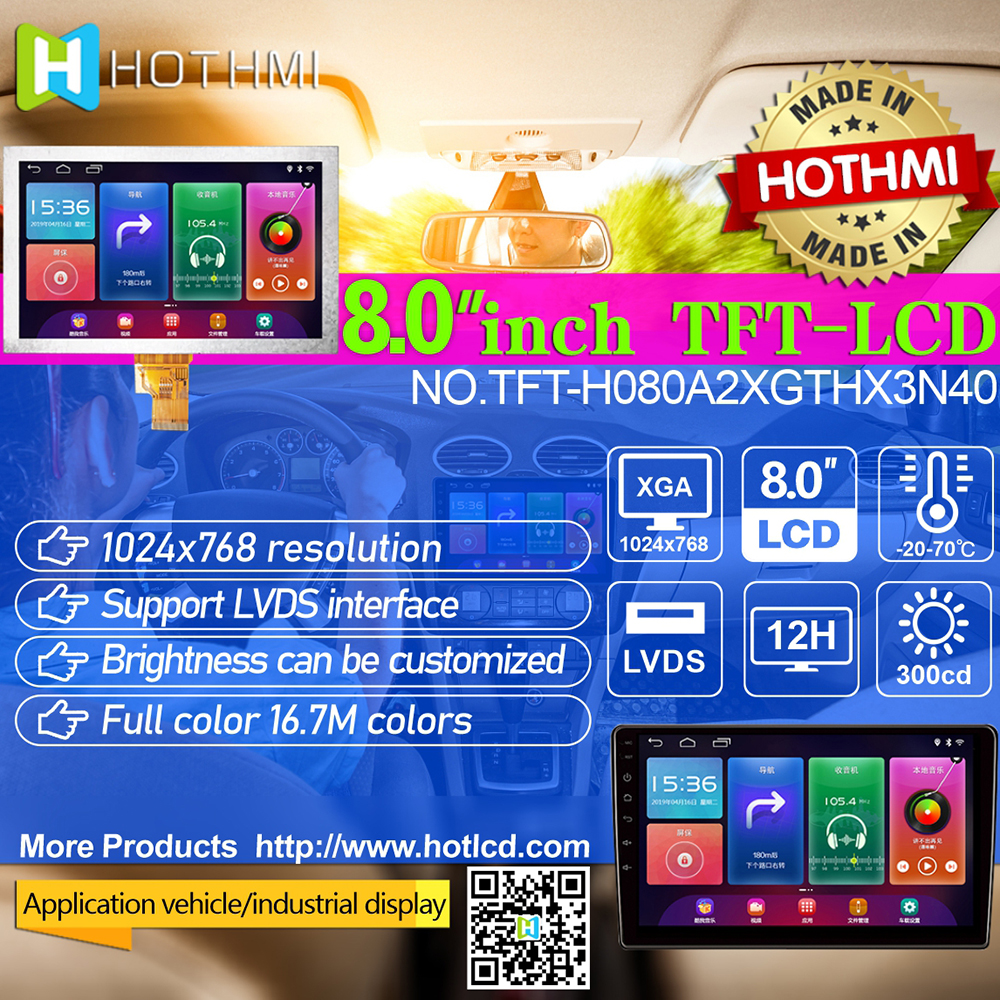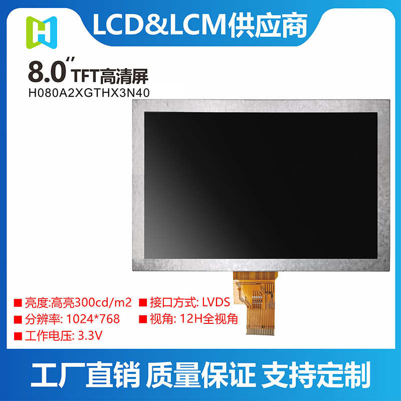 8寸TFT高清/1024*768寬視角/高亮8寸/LVDS-4L接口/TFT-H080A2XGTHX3N40_V0