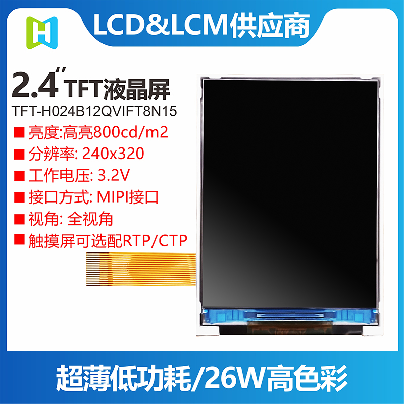 TFT-H024B12QVIFT8N15是HOTLCD研發(fā)團隊精心設(shè)計的2.4英寸TFT彩色液晶屏,240*320分辨率,高畫質(zhì),廣視角,65K/262K真彩,內(nèi)置JD9852控制器,支持MIPI接口,無需外圍電路,15PIN插件FPC可接主板(可選連接器),單電源DC 3.2V供電。 該TFT模組可配備觸摸屏,所有材料均符合RoHS環(huán)保要求標準。 廣泛應用于各種儀表、智能設(shè)備、分析儀器、手持儀表、行車記錄儀等:8051、PIC、AVR、ARDUINO、ARM、樹莓派等。