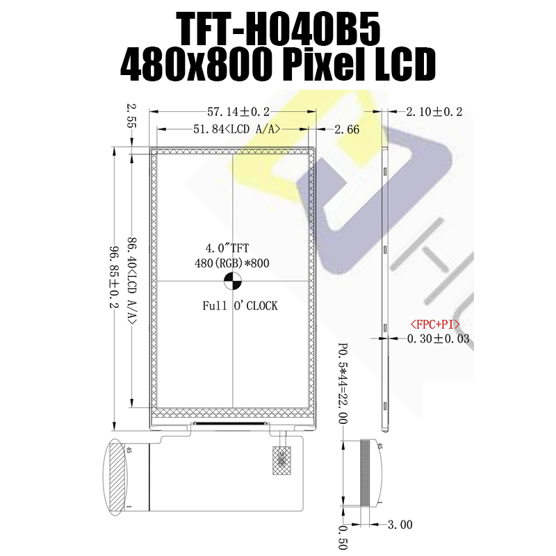 4.0寸TFT 4.0寸TFT彩屏 480*800分辨率 IPS全視角 SPI接口 TFT-H040B5WVIIL4N45