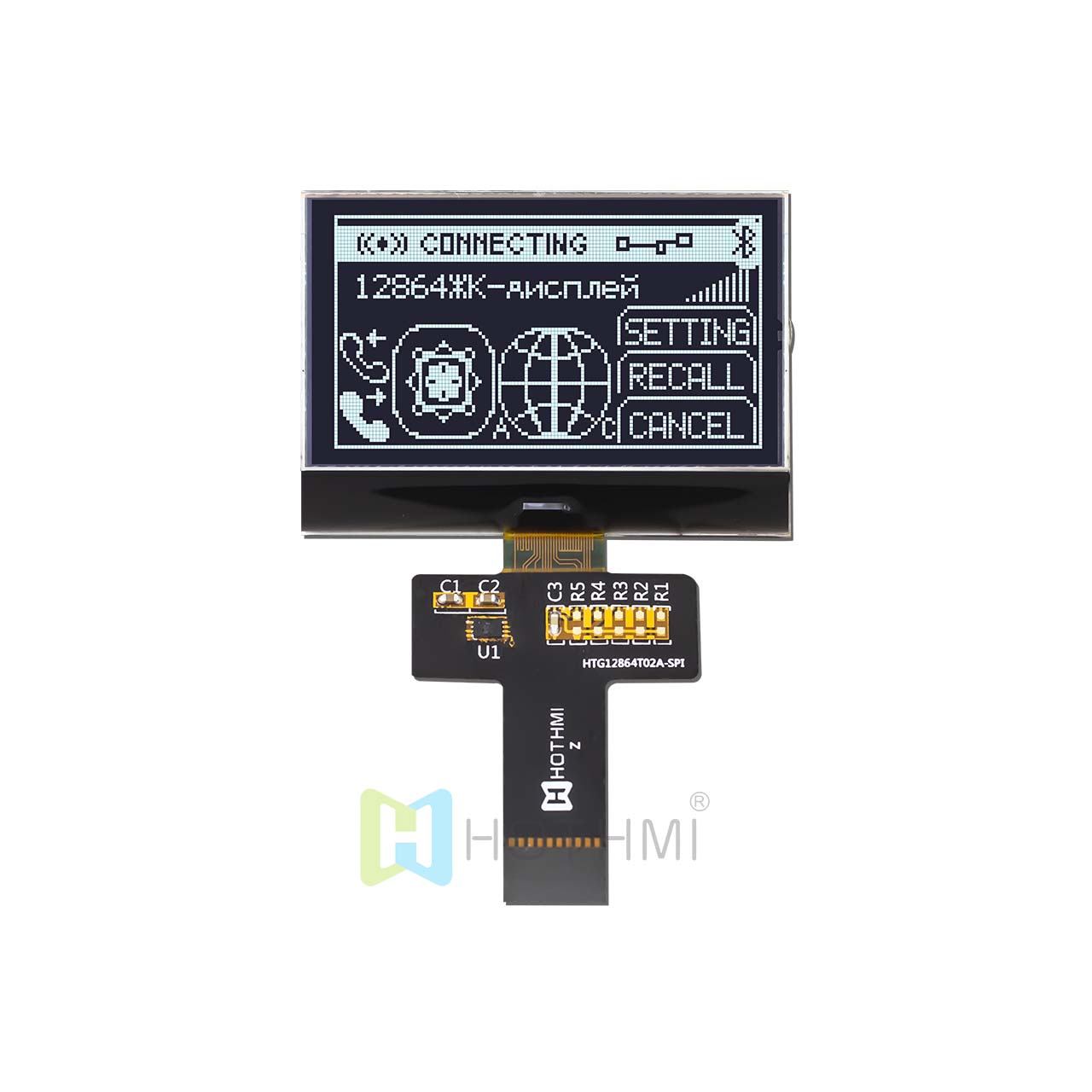 | 2.2 英寸 128x64 圖形 COG | FSTN+ | 紅綠藍背光 | SPI | ST7567 | Arduino HTG12864T02A-35S--SPI-FONT | COG | 128x64 |