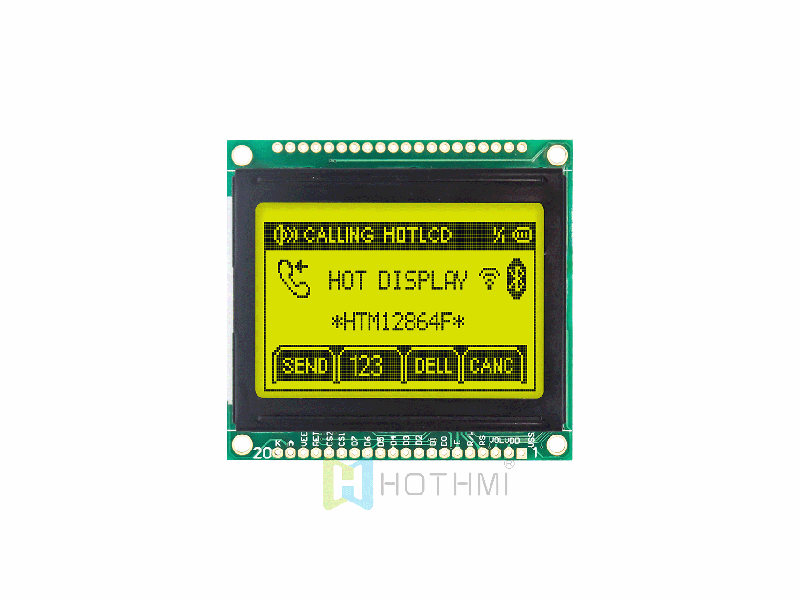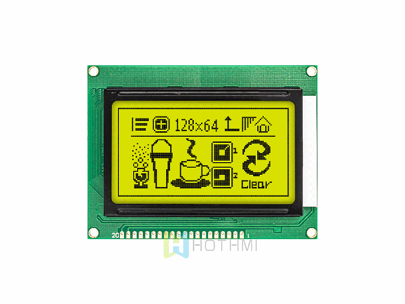 | 3.2英寸128x64 黃綠背光圖形液晶模塊 | 圖形COB模塊 | STN+灰色背景 | Arduino HTM12864Z-11Y-A5P | 圖形液晶模組 | 128x64 |