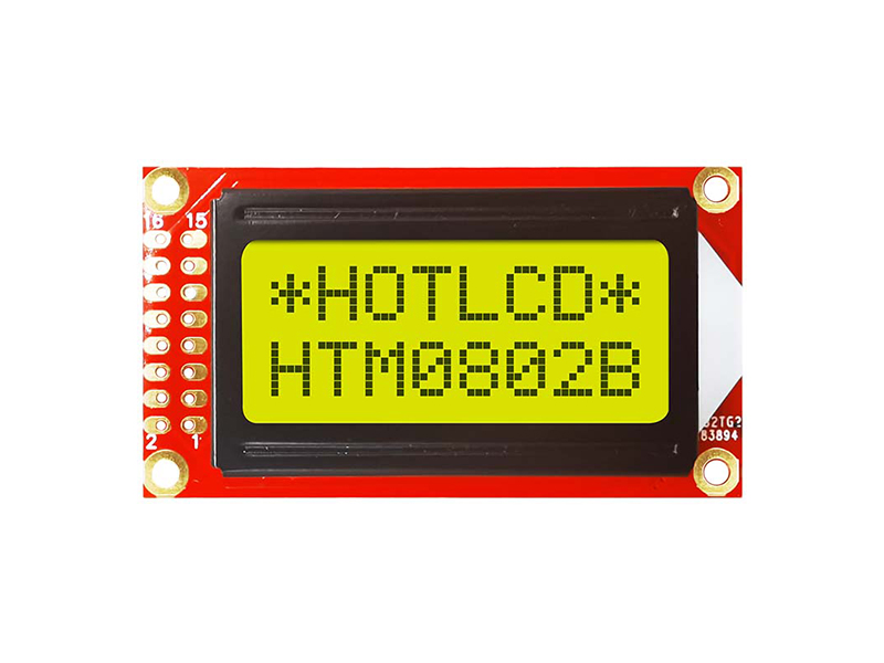 2X8 字符液晶屏 | STN+黃綠膜顯示屏,帶黃綠色側(cè)背光 5.0V HTM-0802B-01Y-T5P-V03 字符液晶顯示模組 8x2 58.0x32.0x10.3 38.0x16.0 27.81x11.5 6H 黃綠 16PIN MCU 防靜電ESD 8KV -20~70℃ 5.0V ST7066U