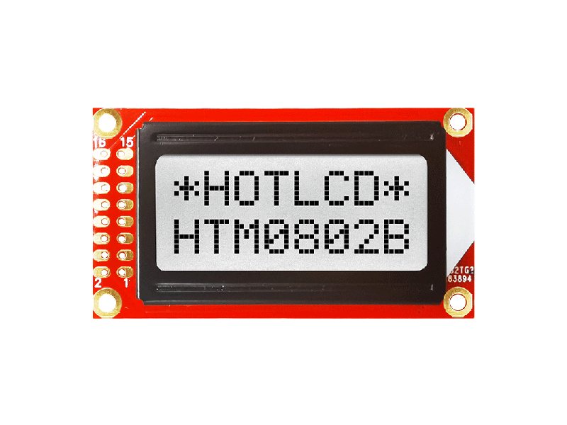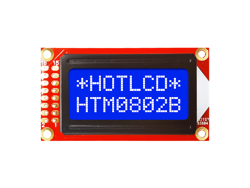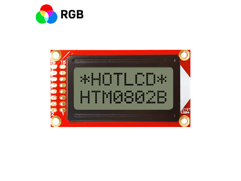 2X8 字符液晶屏 | FSTN+紅綠藍(lán)液晶顯示屏,帶紅綠藍(lán)背光 5.0V HTM-0802B-35S-T5P-V03 字符液晶顯示模組 8x2 58.0x32.0x10.3 38.0x16.0 27.81x11.5 6H 紅綠藍(lán) 16PIN MCU 防靜電ESD 8KV -20~70℃ 5.0V ST7066U